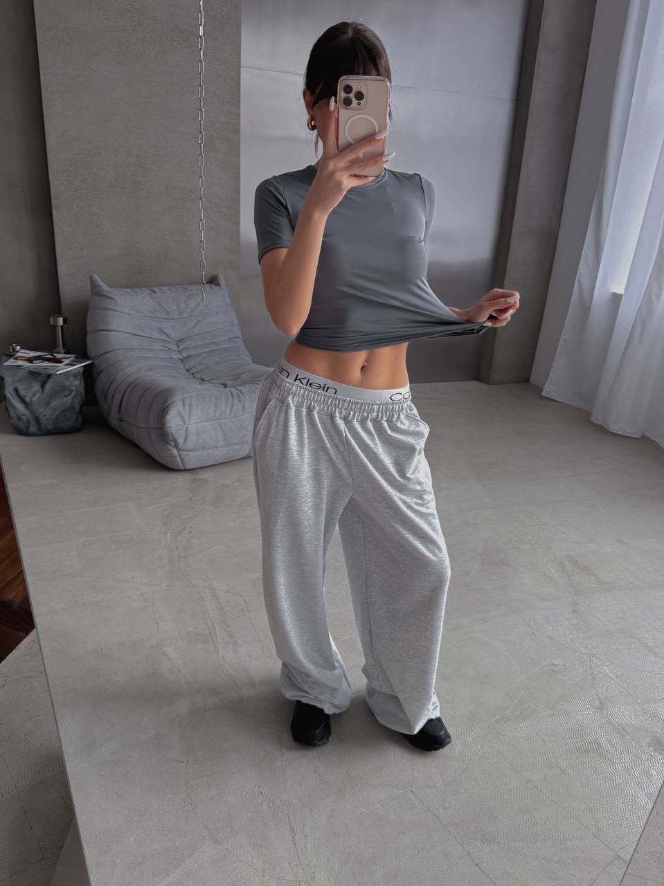 Снизу штаны на ❗️фиксаторах с резиночками❗️(можно стягивать и носить как джогеры)