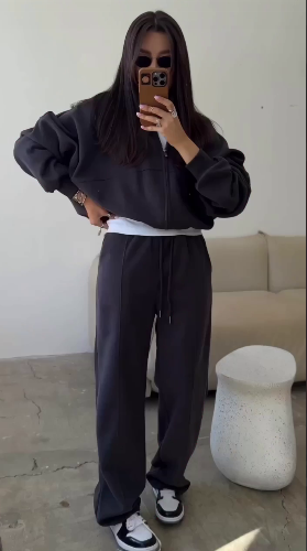 Спортивный костюм для прогулки (кофта на молнии+брюки со стрелкою) двухнитка графит