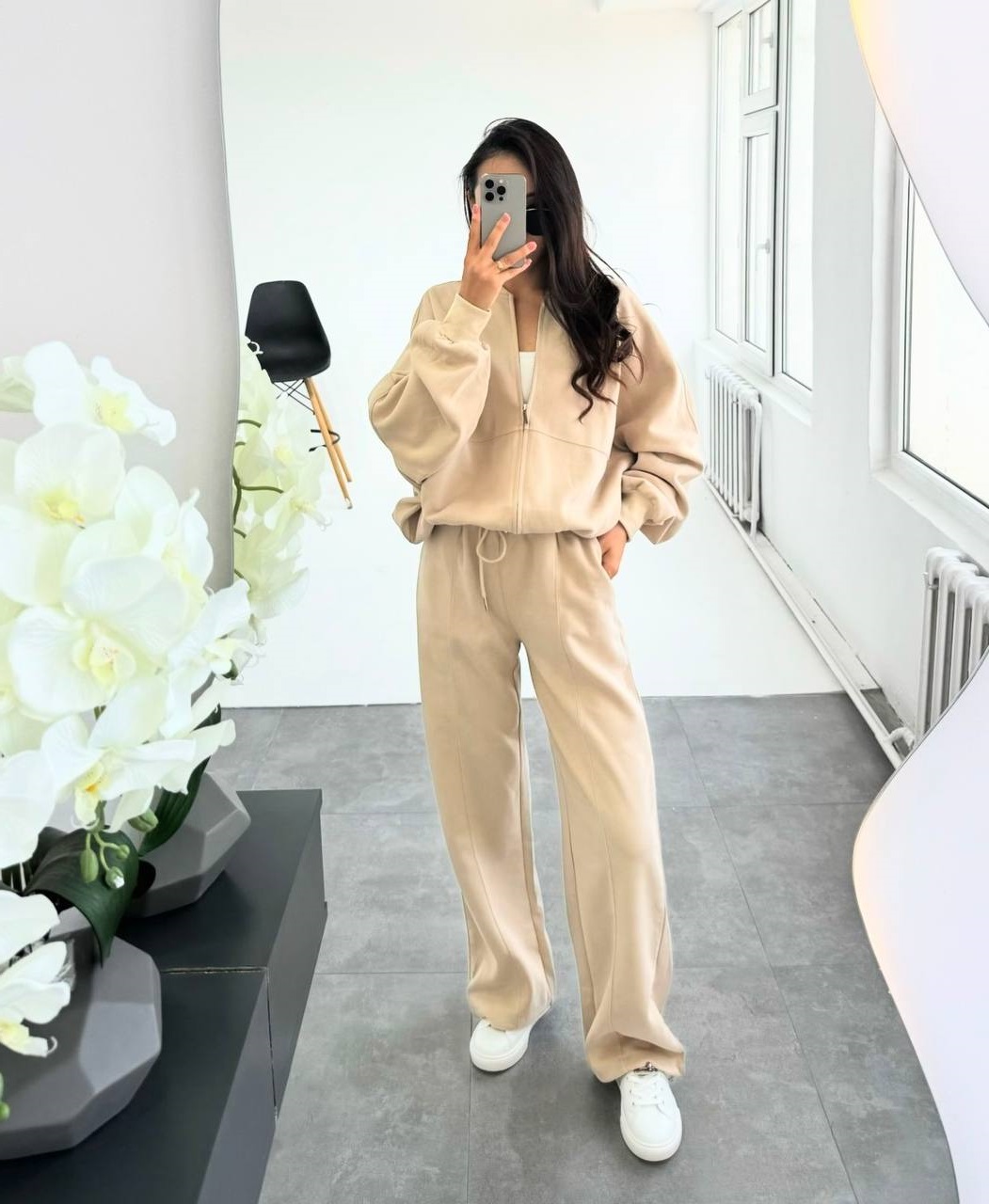 Спортивный костюм для прогулки (кофта на молнии+брюки со стрелкою) двухнитка бежевый