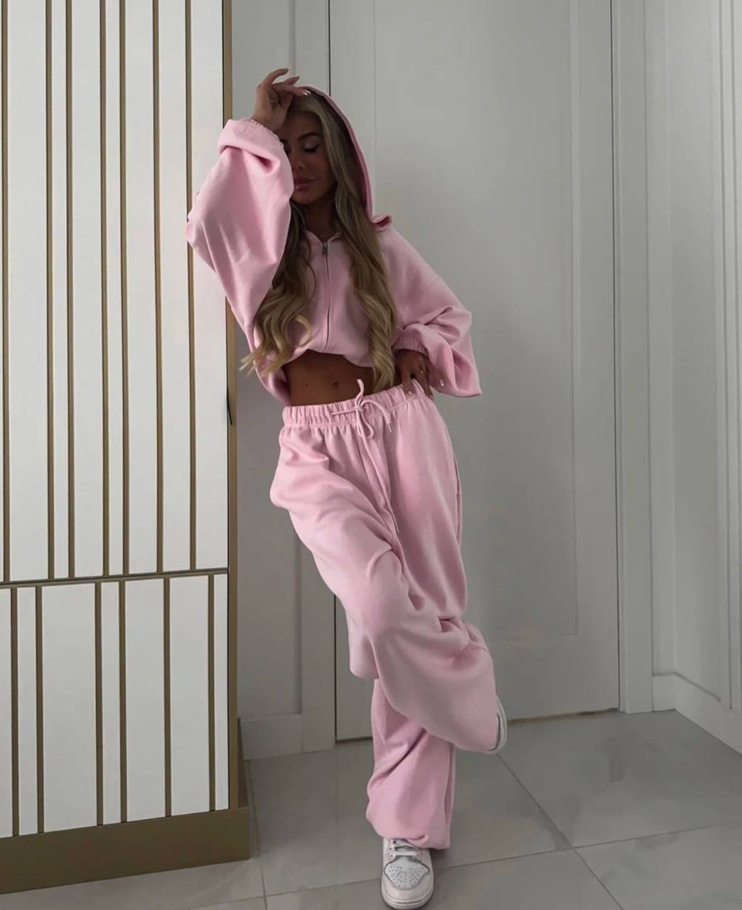 Спортивный костюм двойка: Худи+штаны с затяжками внизу розовый
