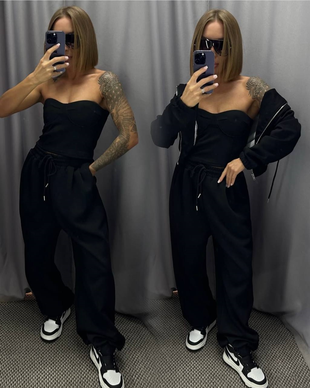 Худи oversize на молнии и свободные штаны, выглядят очень стильно
