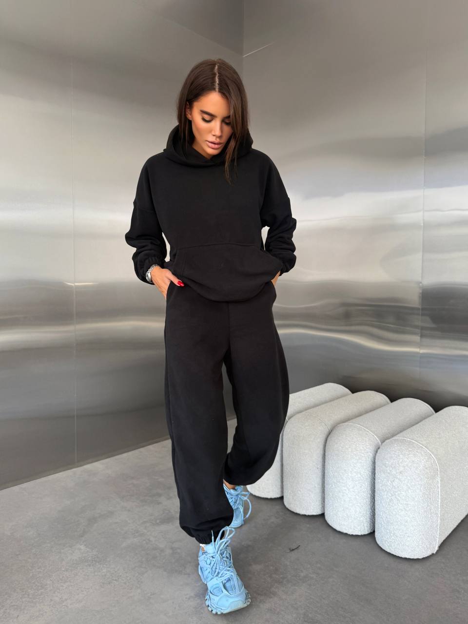 Спортивный костюм (худи с капюшоном+карманы+джоггеры с карманами на манжете) флис черный