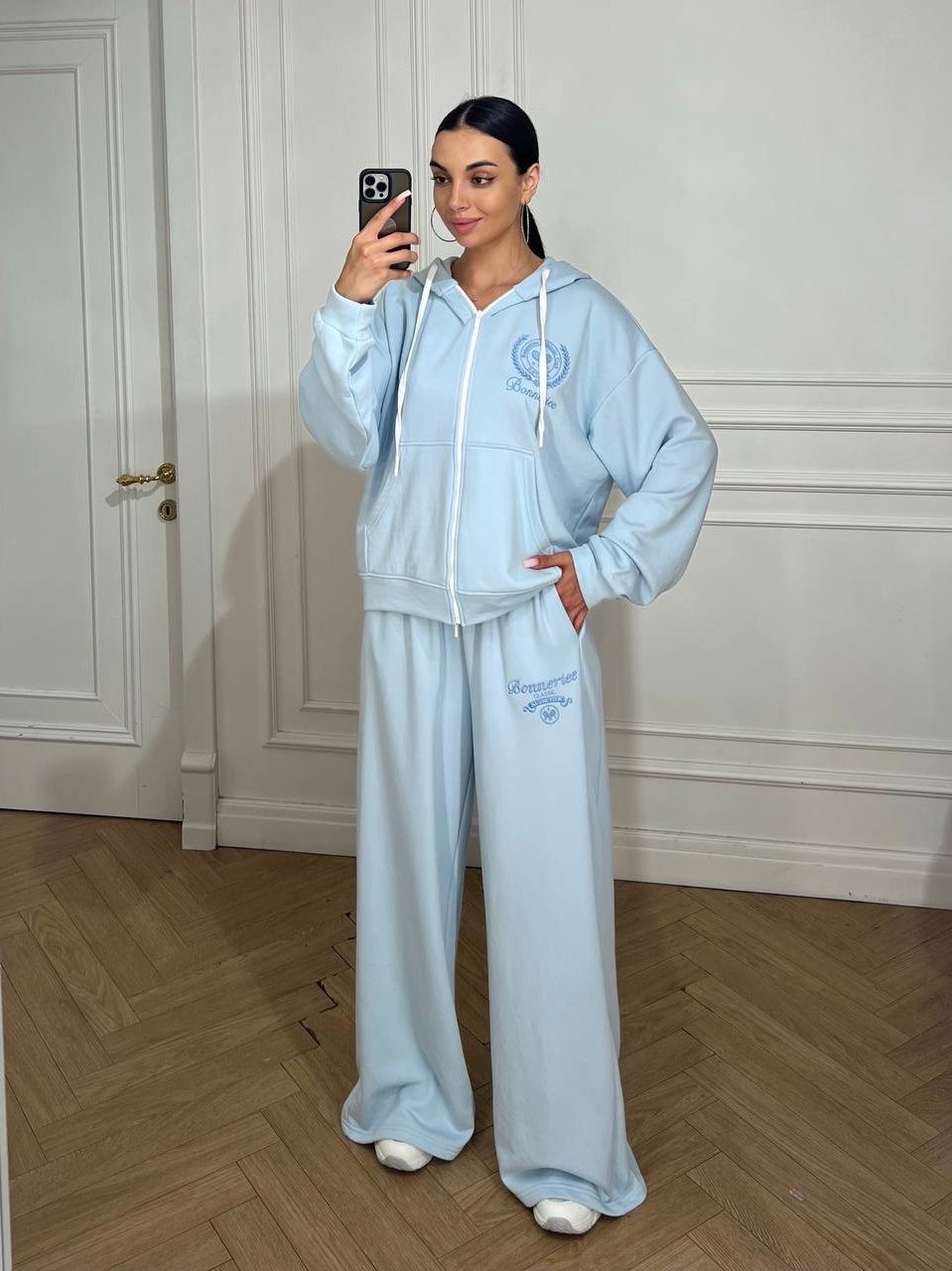 Спортивный костюм (худи с капюшоном+вышивкой+брюки свободного кроя) голубой