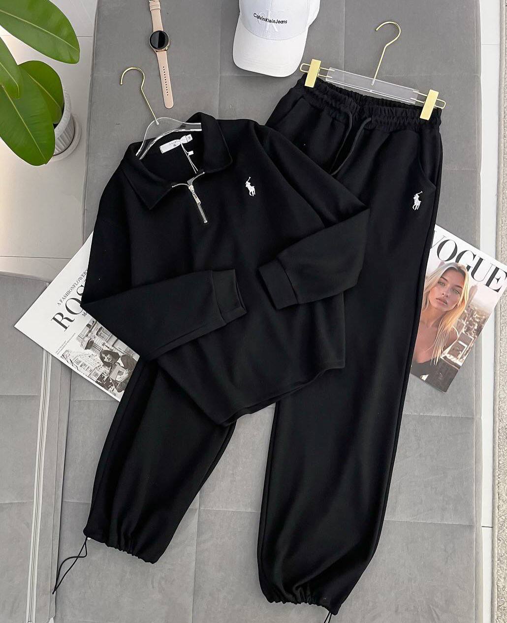 Будьте першим, хто залишив відгук “Спортивный костюм из лого: кофта с воротником+штаны на затяжке (двунитка) черный”“