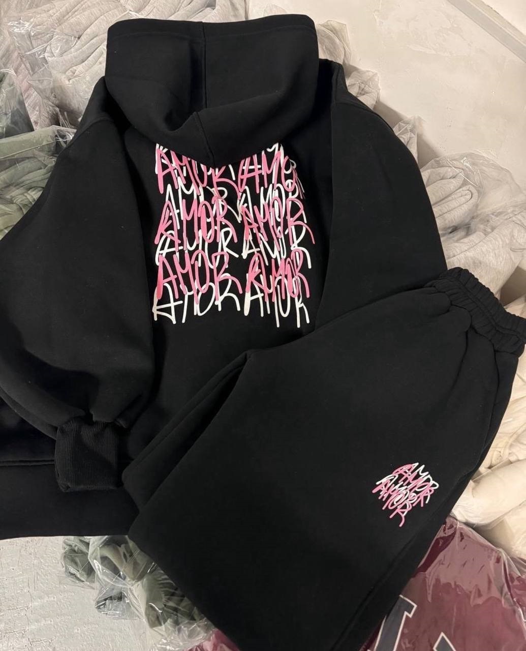 Головна » Магазин » Одяг » Жіночі спортивні костюми » Спортивный костюм из трехнитки на флисе (кофта с )с накатом на спинке+брюки) черный