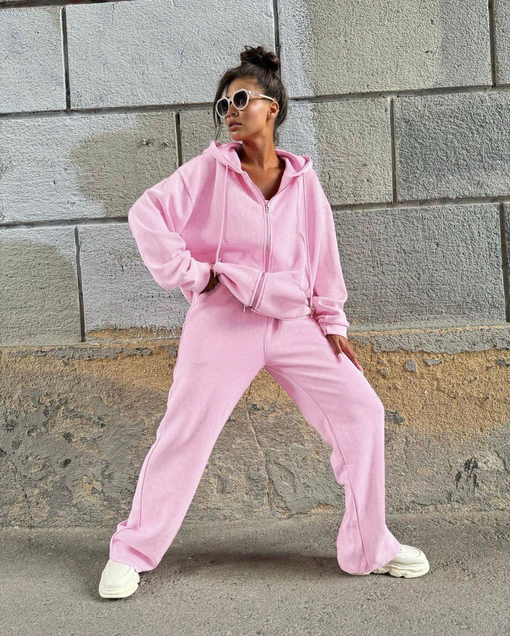 Спортивный костюм (кофта на молнии с капюшоном+брюки свободного кроя) нежно-розовый