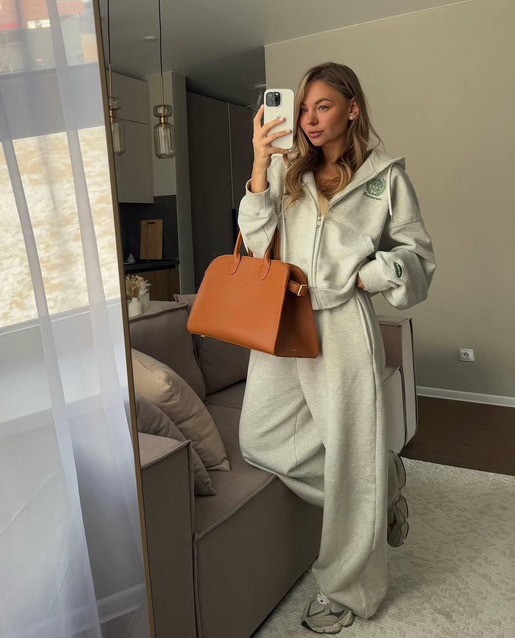 Спортивный костюм (кофта на молнии с накатом+капюшоном+свободные брюки) меланж