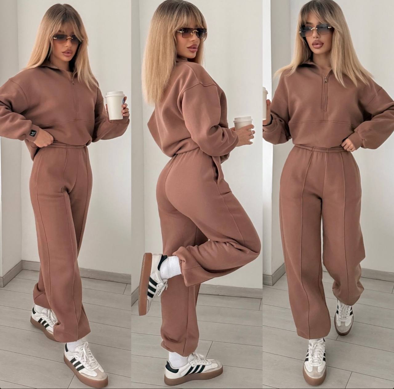 Спортивный костюм (кофта с воротником стойкой на молнии+брюки со стрелками+низ на резинке) кемел