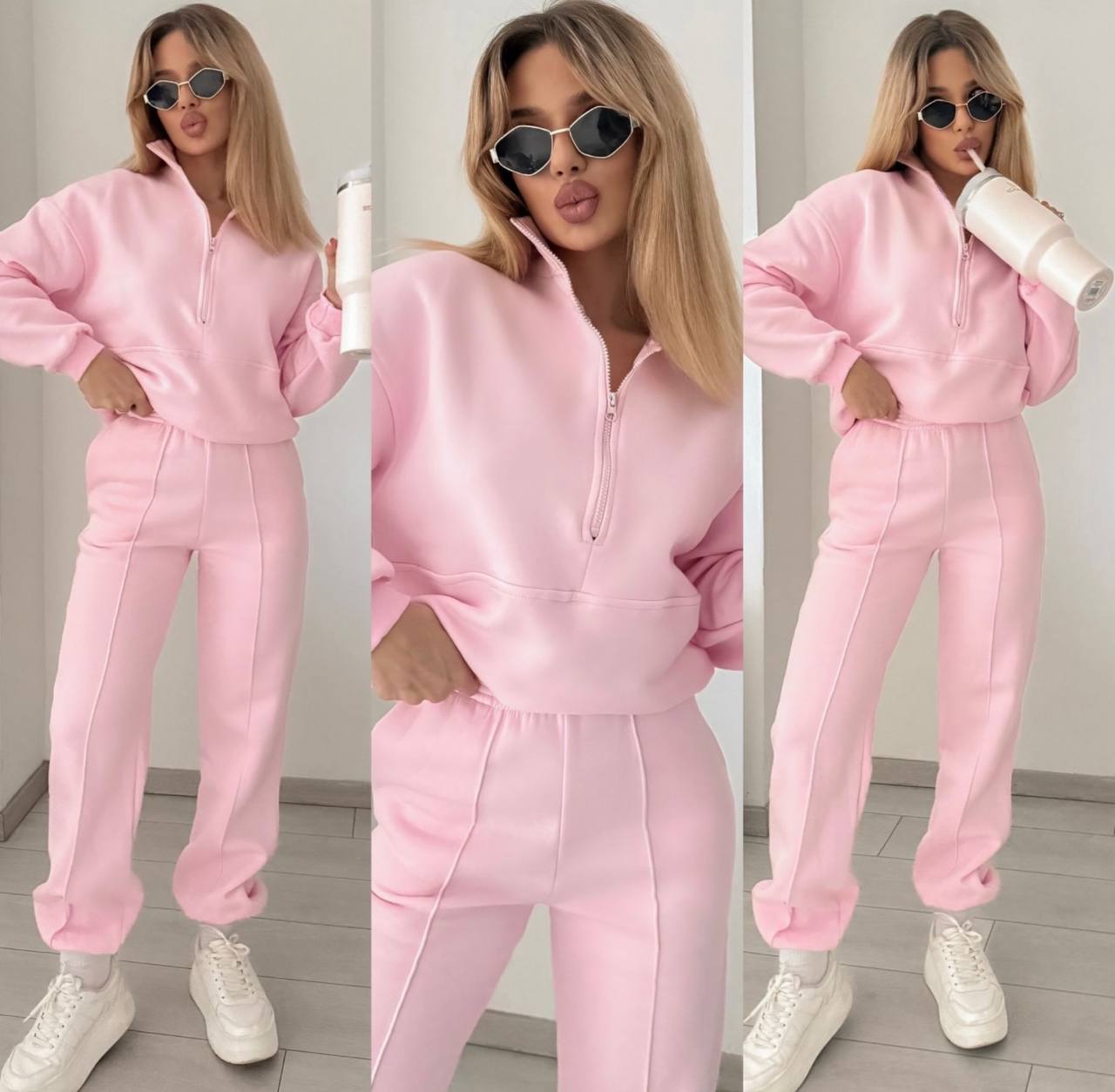 Будьте першим, хто залишив відгук “Спортивный костюм (кофта с воротником стойкой на молнии+брюки со стрелками+низ на резинке) розовый”“