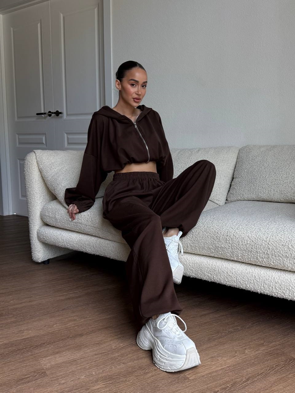 Спортивный Костюм (кофта снизу на фиксаторах с капюшоном+брюки палаццо) шоколад
