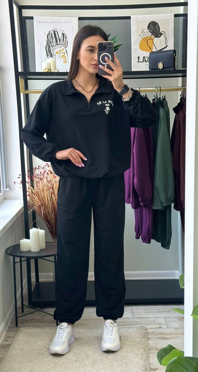 Спортивный костюм (кофта стойка воротник на молнии+брюки с манжетой на резинке) черный