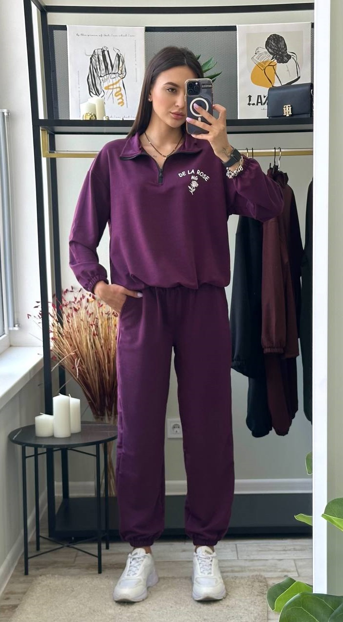 Спортивный костюм (кофта стойка воротник на молнии+брюки с манжетой на резинке) марсал