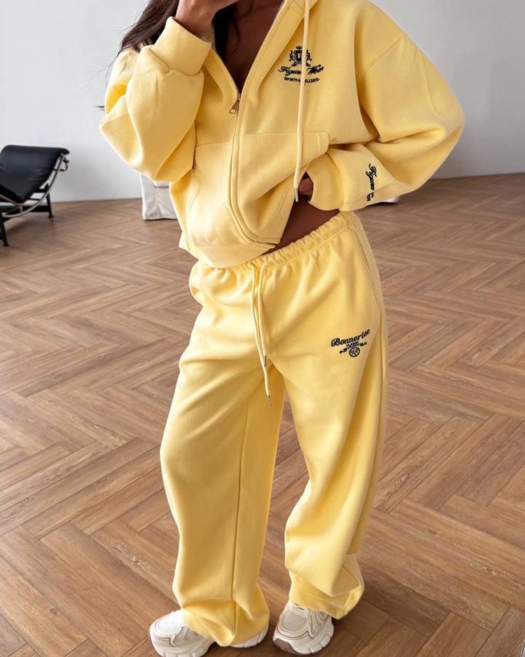 Спортивный костюм оверсайз с накатом (брюки+кофта на молнии с капюшоном) желтый