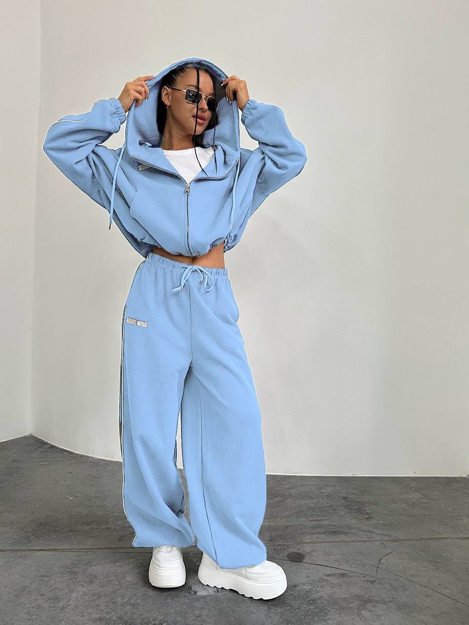 Спортивный костюм с вставкой канта (брюки свободного кроя по низу затяжки+кофта укороченная) голубой