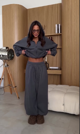 Спортивный костюм свободного кроя (брюки с манжетой по низу+кофта с капюшоном на молнии) графит