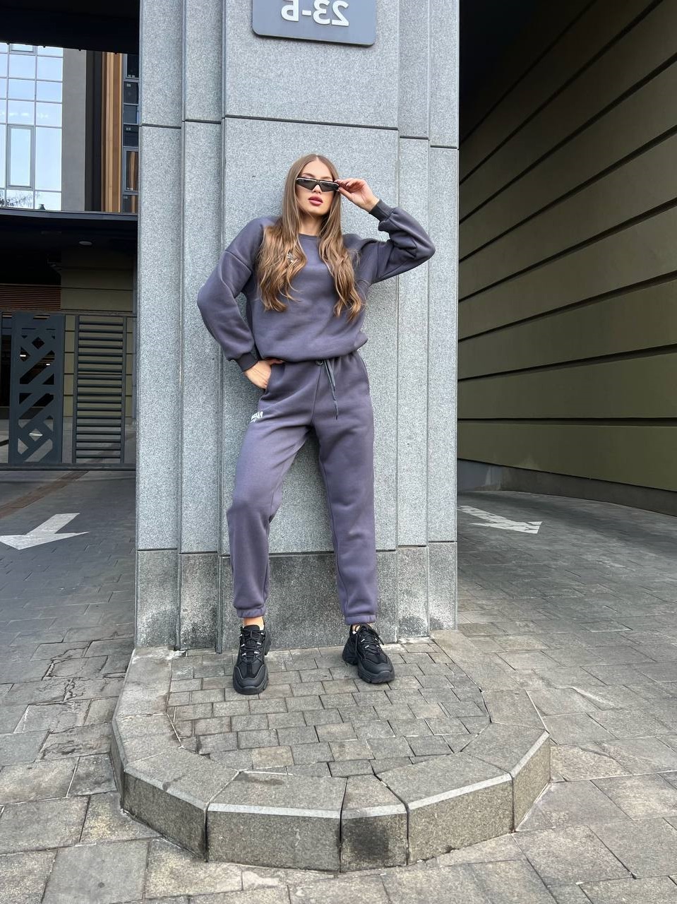 Спортивный костюм теплый удобный (манжеты+горловина рибана) трехнить на флисе графит
