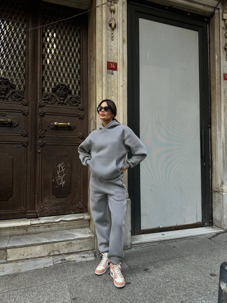 Спортивный костюм (толстовка с карманом-кенгуру+штаны) трехнить на флисе серый