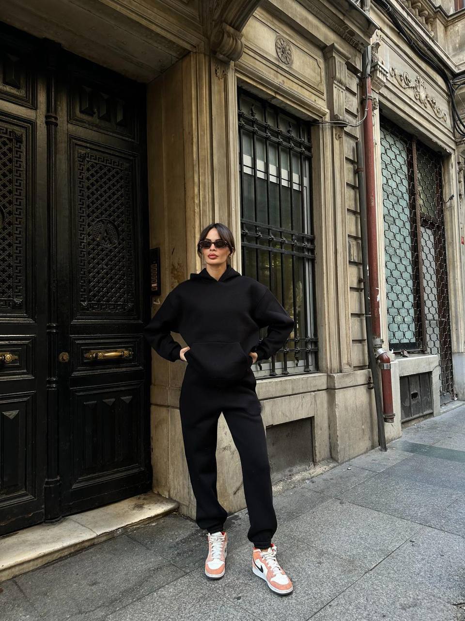 Спортивный костюм (толстовка с карманом-кенгуру+штаны) трехнить на флисе черный