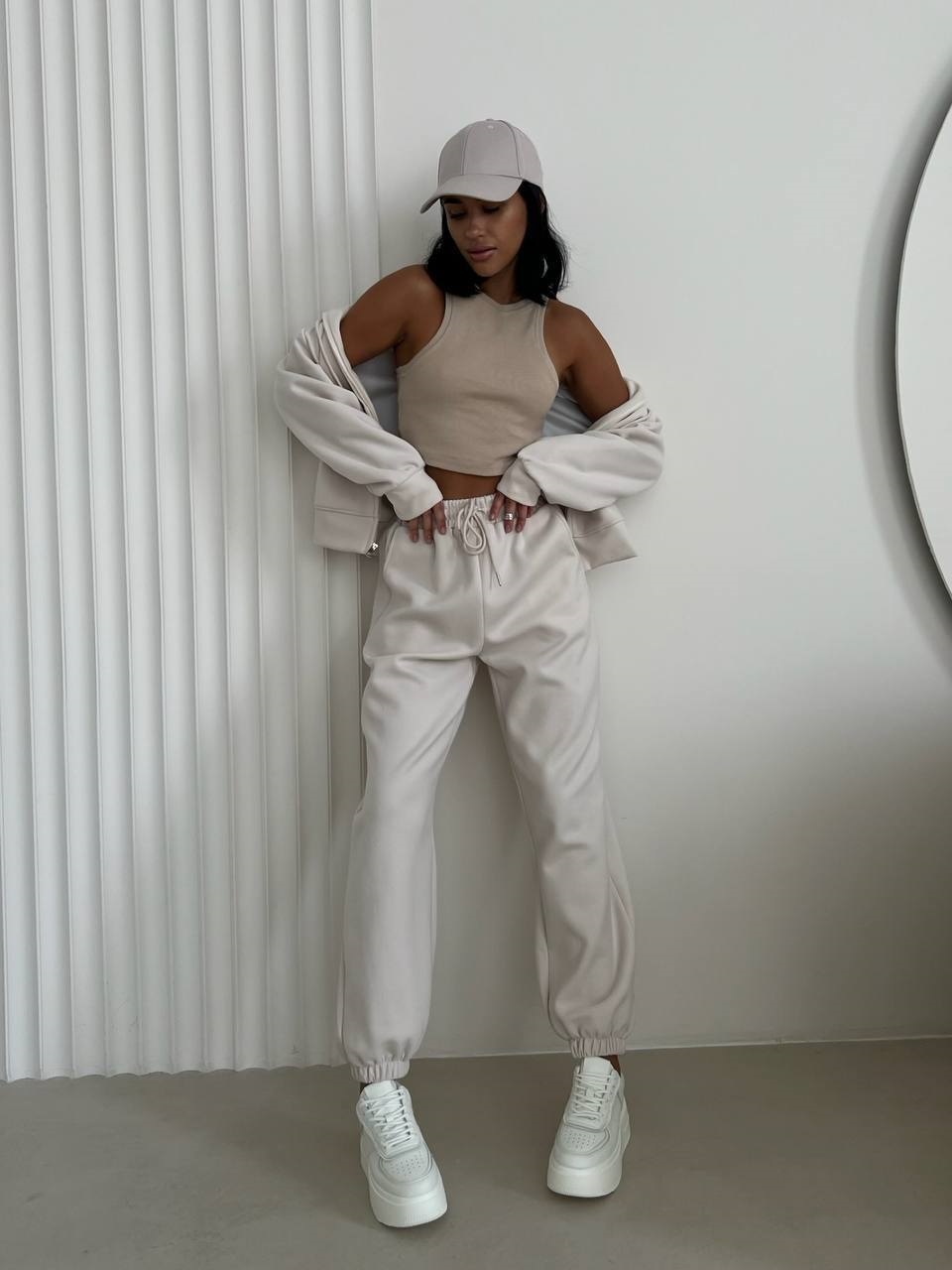 Крутой костюм тройка: зип худи, джоггеры и топ