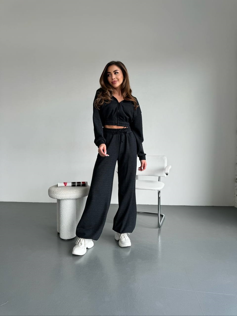 Головна » Магазин » Одяг » Жіночі спортивні костюми » Спортивный костюм (укороченная кофта на молнии+брюки низ на резинке) серый