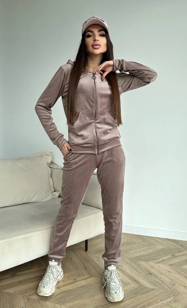 Спортивный костюмчик худи на змейке с капюшоном + штаны мокко