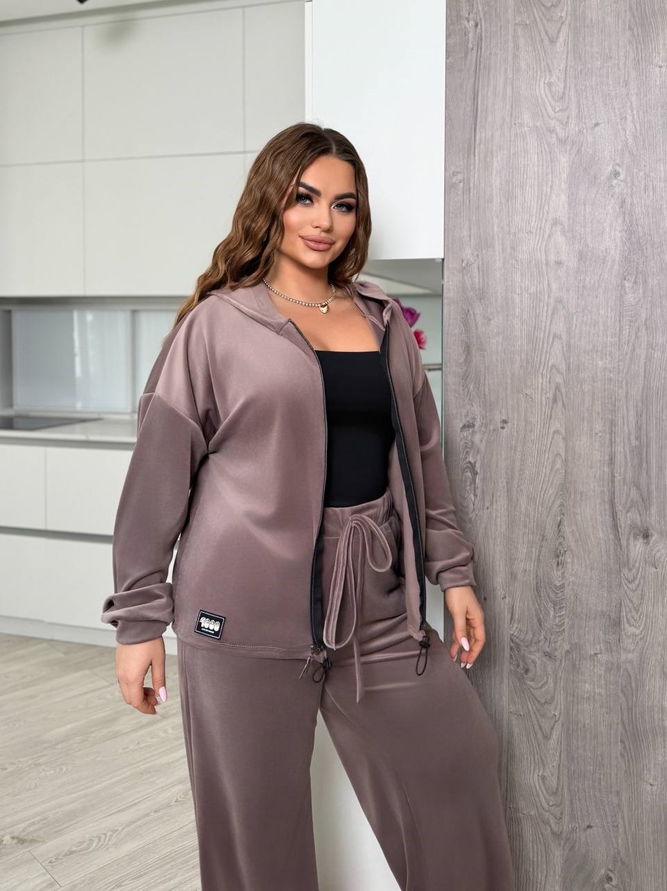 Будьте першим, хто залишив відгук “Спортивный велюровый костюм (кофта на молнии с капюшоном+широкие брюки) мокко”“