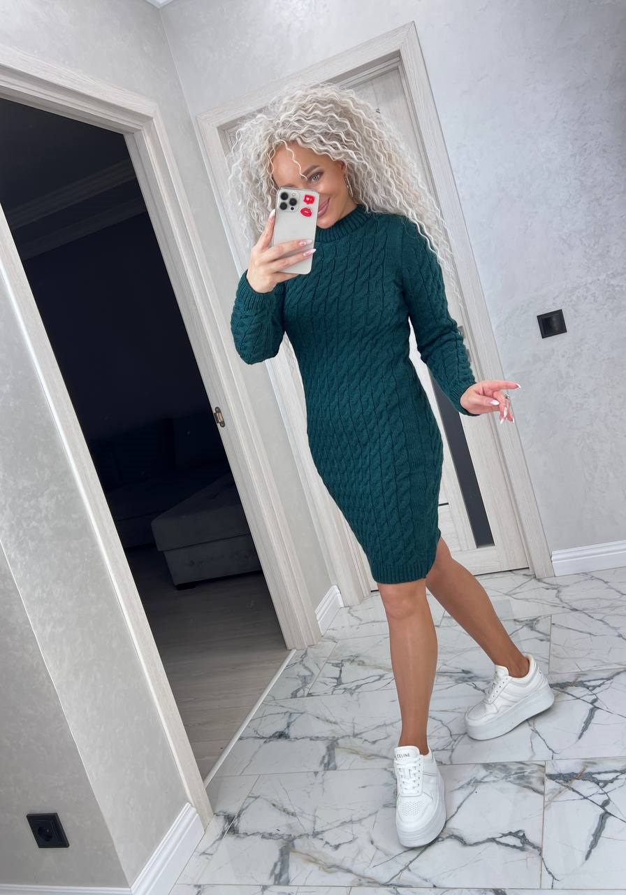 Будьте першим, хто залишив відгук “Стильное теплое вязаное платье изумруд”“