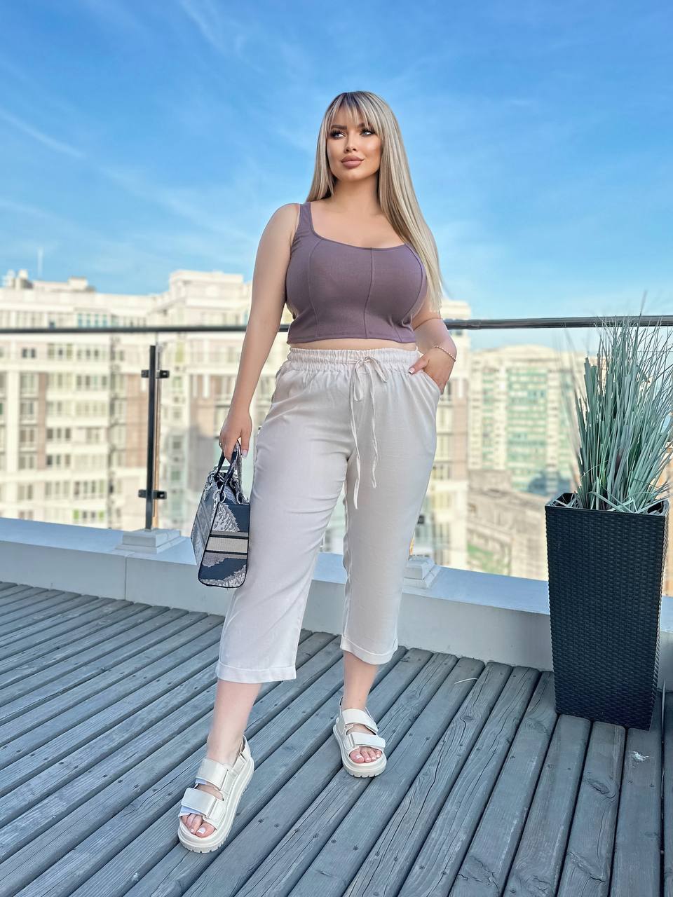 Будьте першим, хто залишив відгук “Стильные Легкие укороченные льняные брюки беж”“