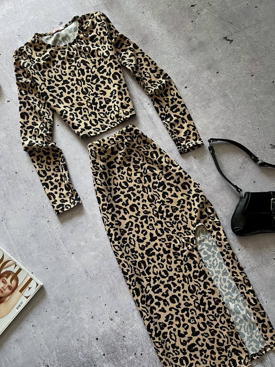 Привлекательный костюм лео: кроп топ и юбка с разрезом