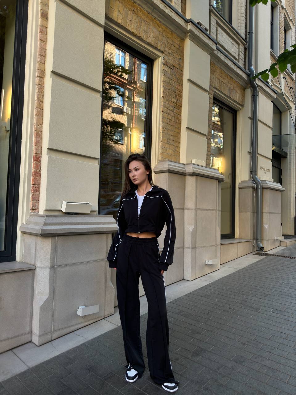 Стильный костюм двухнить (кофта+штаны с разрезами) черный
