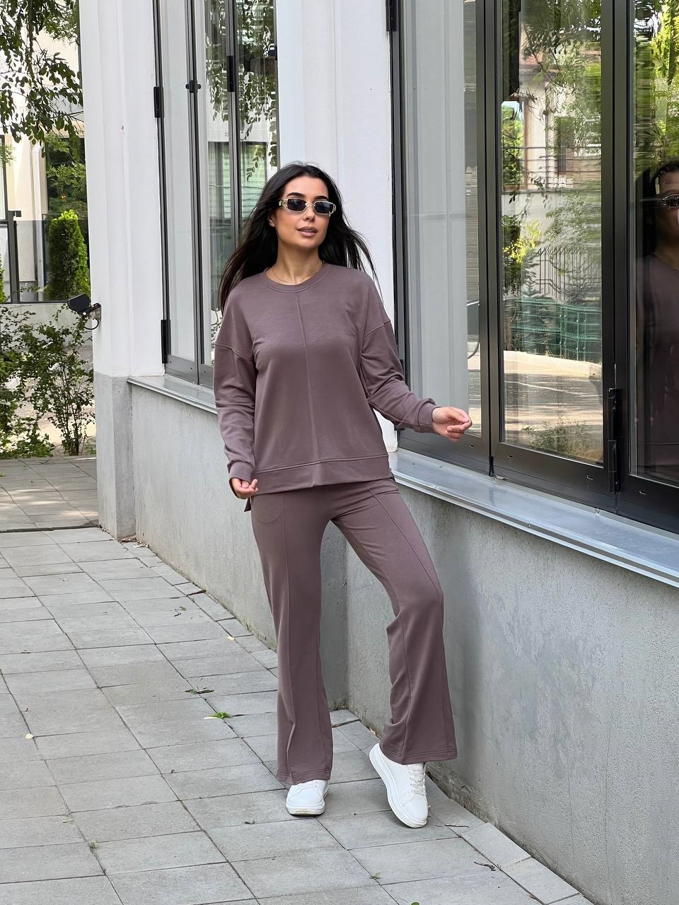 Головна » Магазин » Одяг » Жіночі костюми » Стильный костюм кофта с молнией по бокам и штаны шоколад