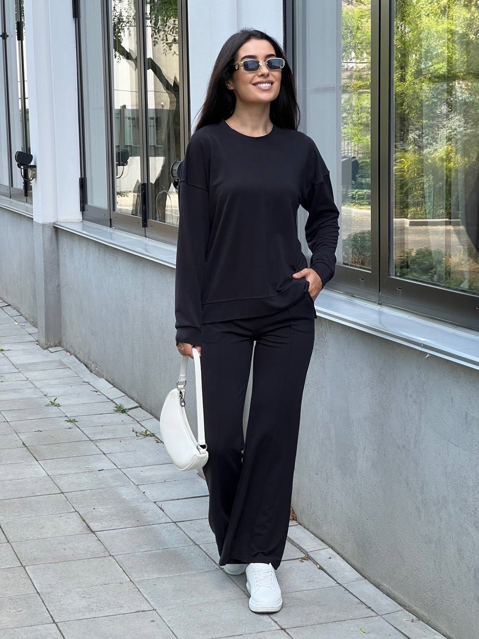 Головна » Магазин » Одяг » Жіночі костюми » Стильный костюм кофта с молнией по бокам и штаны черный