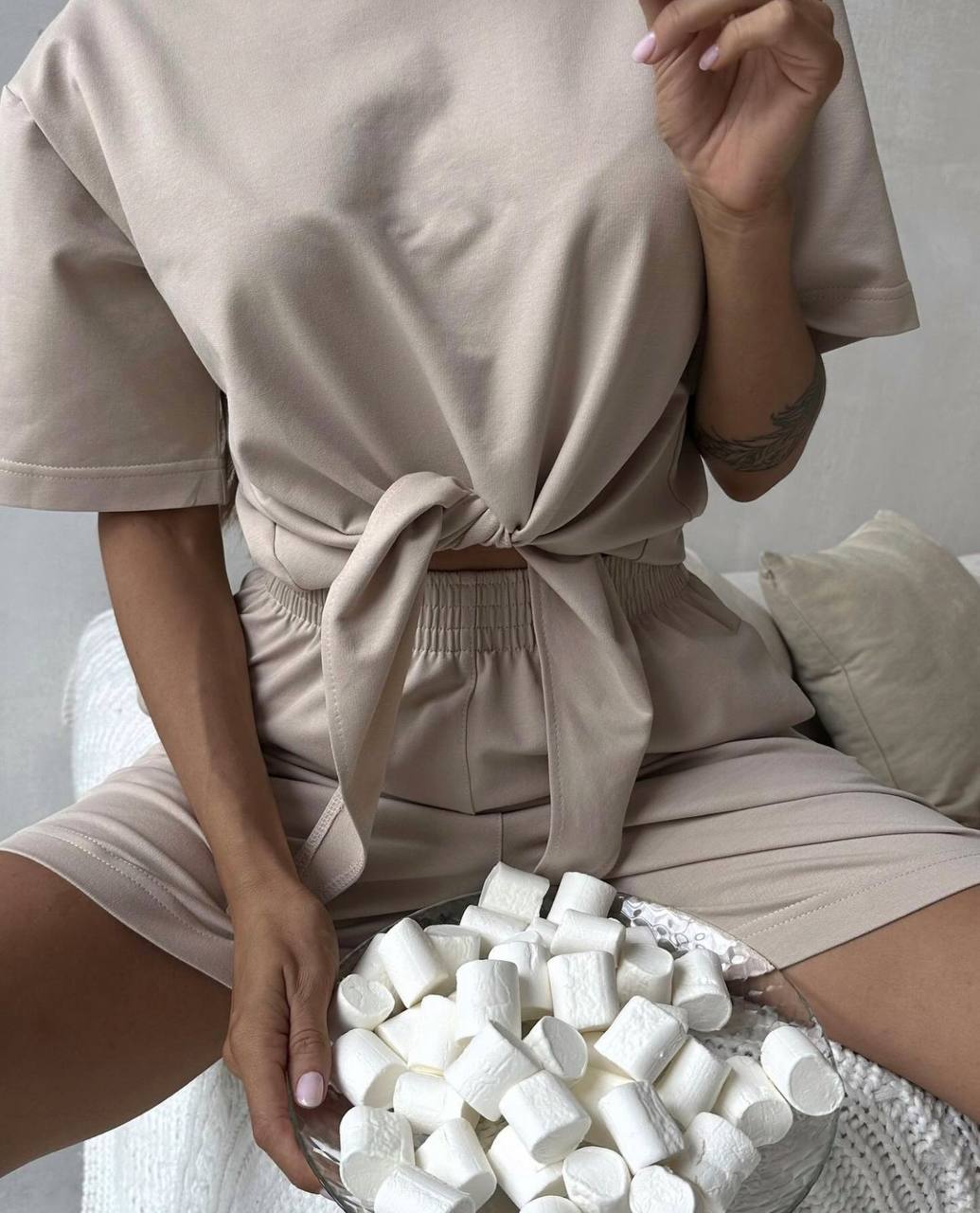 Лёгкий костюмчик оверсайз с завязками под грудью (можно распускать)