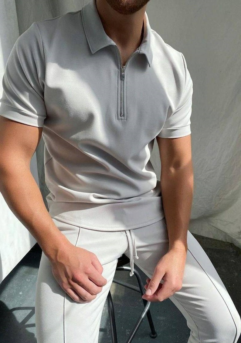 Головна » Магазин » Одяг » Чоловічі костюми » Стильный мужской костюм футболка-поло + штаны серый