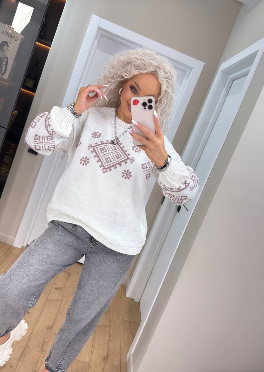 Свитер с этническим узором молочный