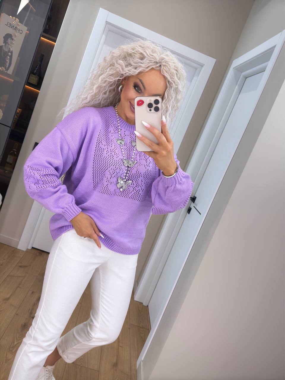 • Ажурное плетение с цветочным мотивом на груди и рукавах