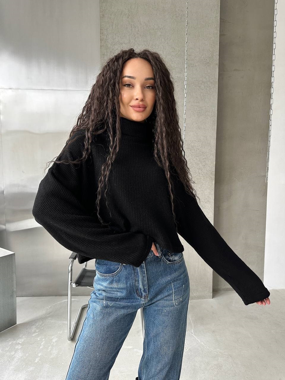 Головна » Магазин » Одяг » Кофти, толстовки, худі, светри » Свитер тёплый и удобный ангора вязка черный