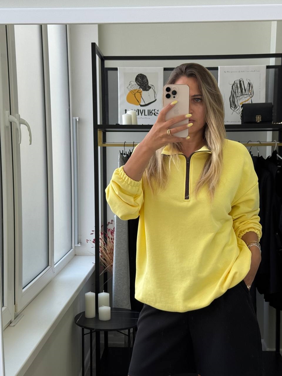 Головна » Магазин » Одяг » Кофти, толстовки, худі, светри » Свитшот оверсайз с воротником на молнии лимон