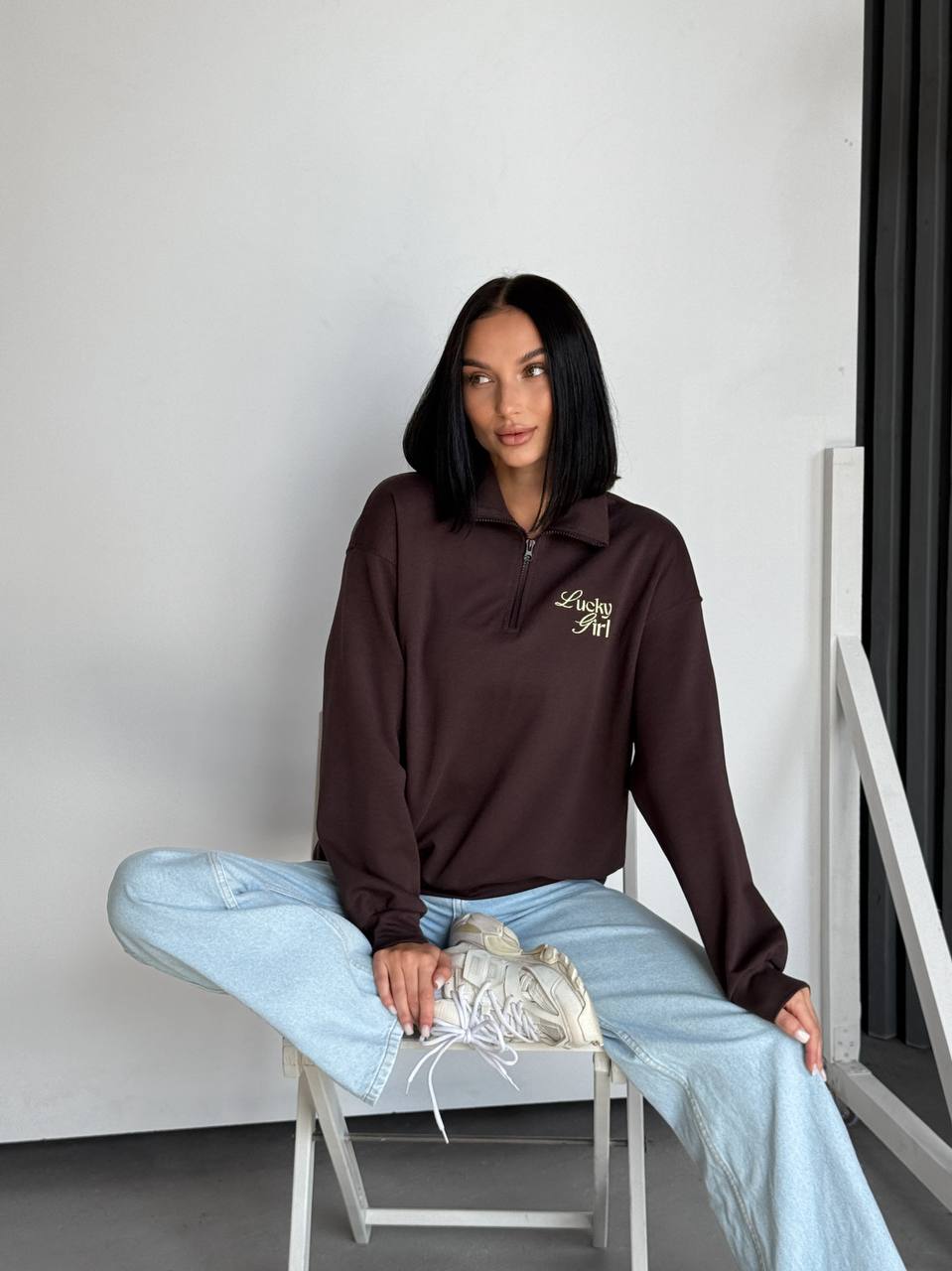Свитшот с вышивкой на удачу Lucky Girl шоколад