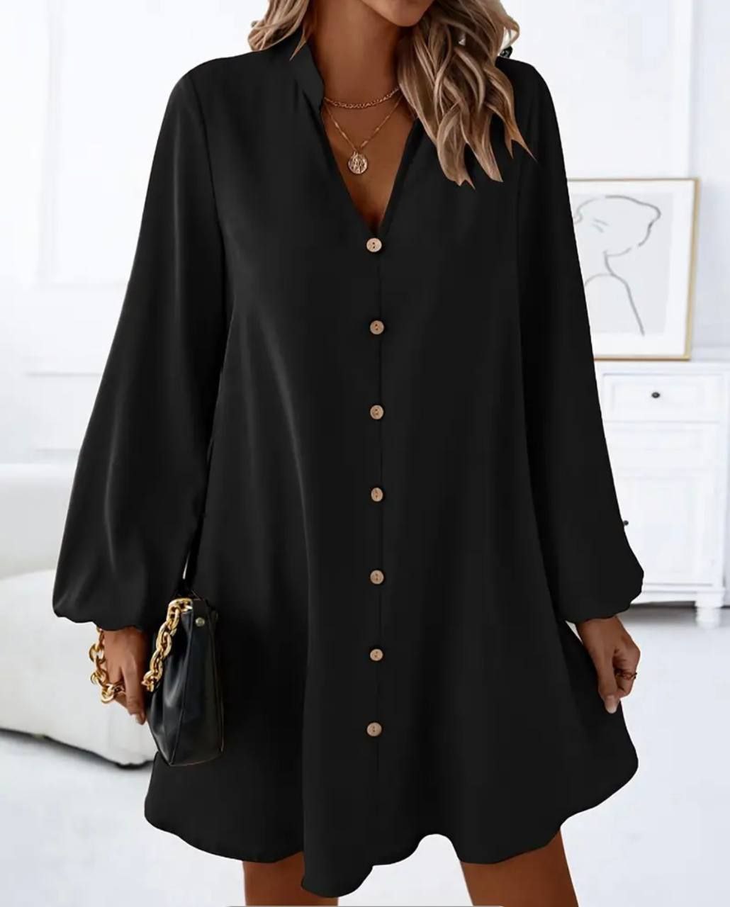 Будьте першим, хто залишив відгук “Свободное платье на пуговицах с длинным рукавом черный”“