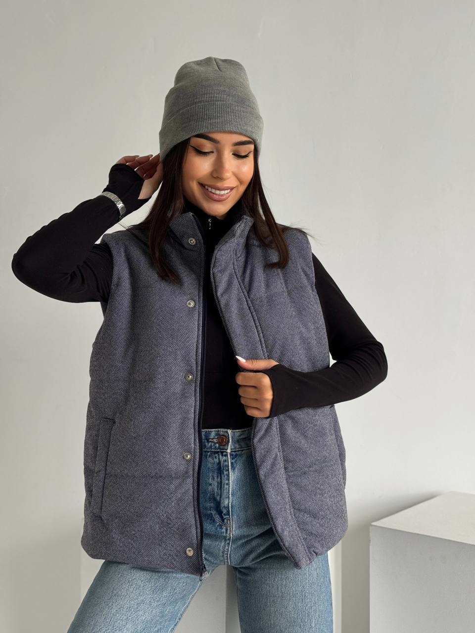 Жилетка из приятного кашемира в елку. На молнии и кнопках.