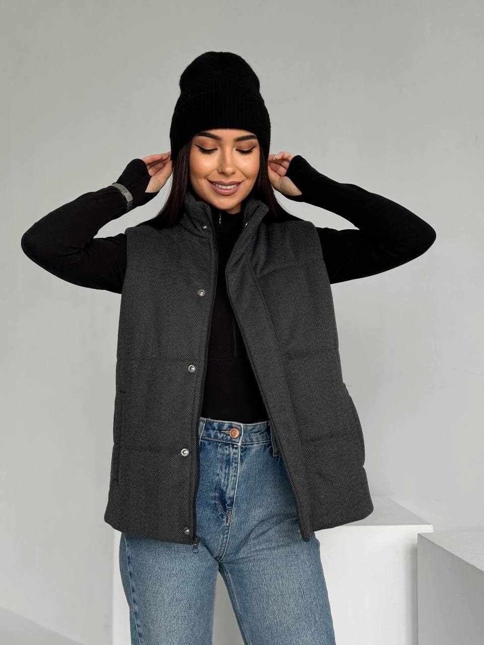 Жилетка из приятного кашемира в елку. На молнии и кнопках.