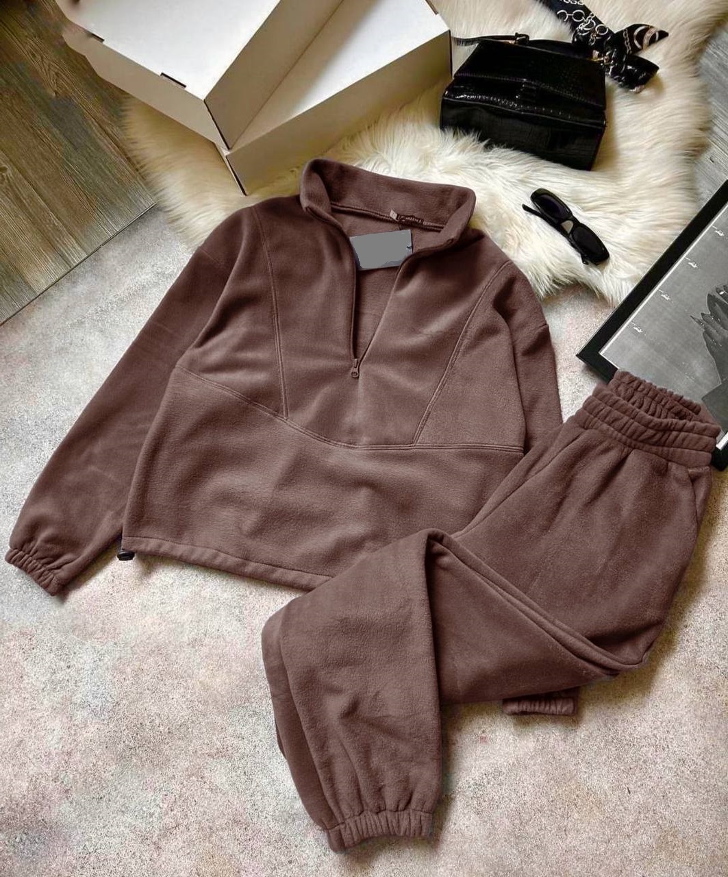 Тепленький удобный костюм, чтобы согреть в прохладные дни. Кофта на фиксаторах снизу и воротник на змейке. Мягкая приятная ткань к телу.