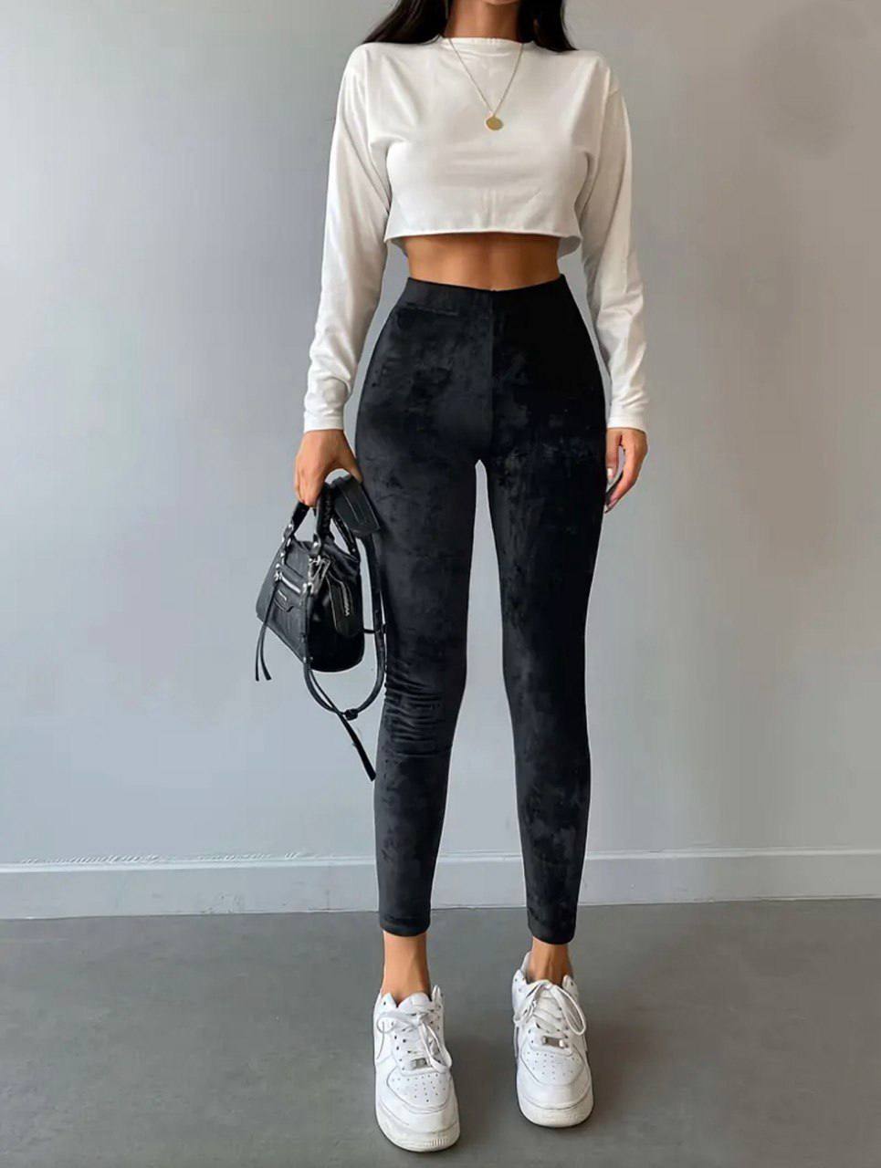 Лосины ✒️Размеры – 42(S), 44(M), 46(L) ✒️Ткань – Велюр на МЕХУ. Колір: Чорний