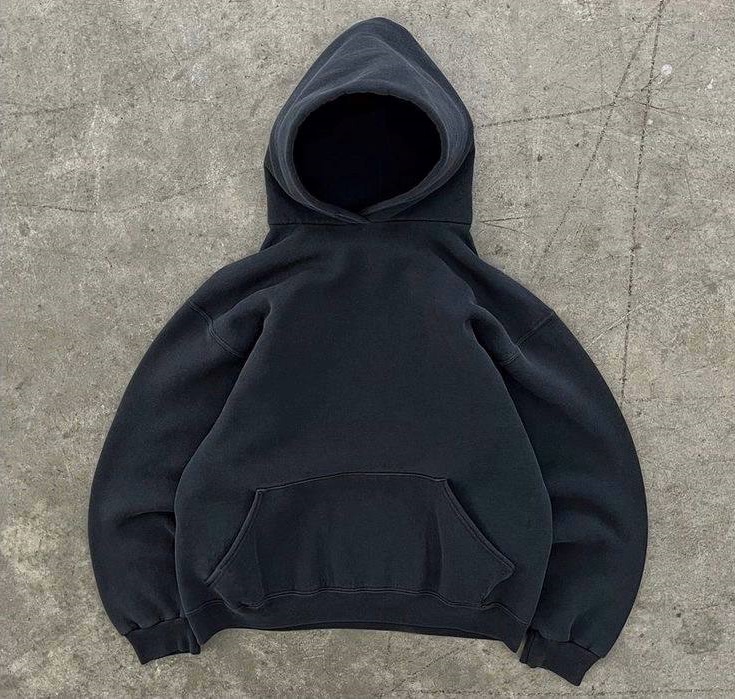 Спущенный рукав, глубокий одинарный капюшон, манжеты из основной ткани, карман кингуру.
