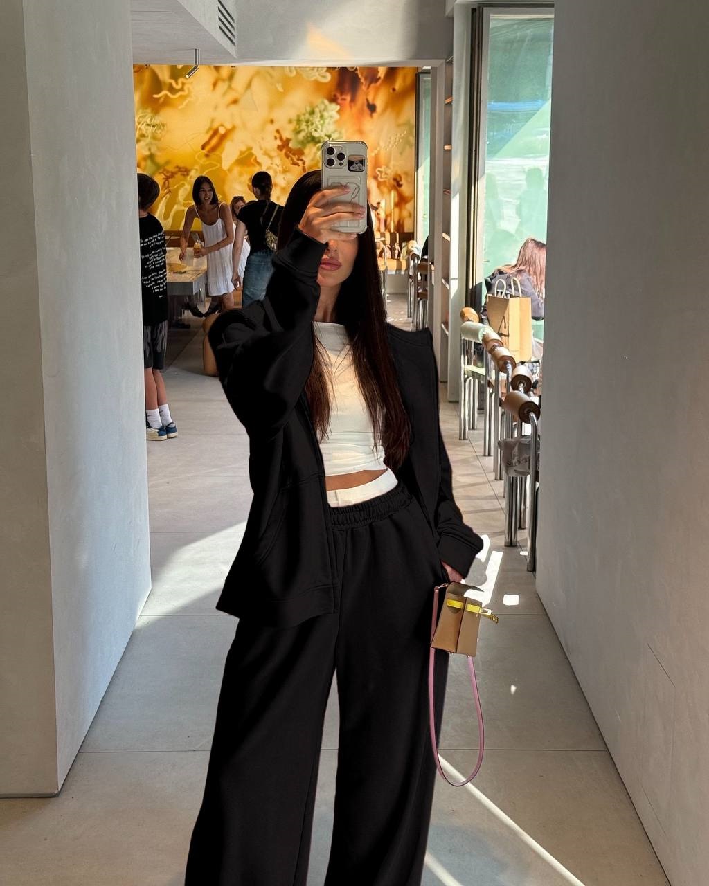 Головна » Магазин » Одяг » Жіночі костюми » Теплый классный костюм (кофта на молнии с капюшоном+брюки с кулиской по низу) черный