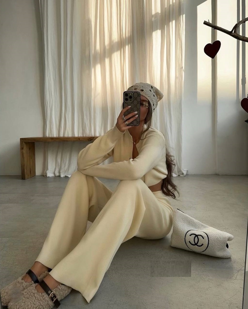 Головна » Магазин » Одяг » Жіночі костюми » Теплый костюм из ангоры (кардиган+свободные брюки) молочный