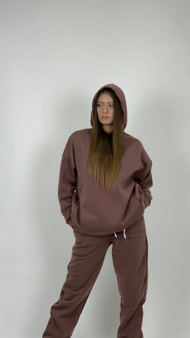 Головна » Магазин » Одяг » Жіночі костюми » Теплый костюм из трехнитки на флисе (кофта с капюшоном+свободные брюки) мокко