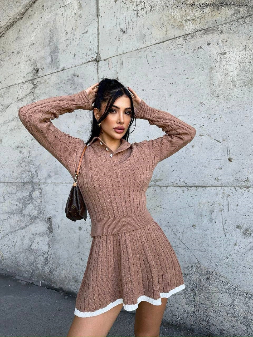 Будьте першим, хто залишив відгук “Теплый костюмчик с контрастной отделкой (свитерок с отложным воротничком+мини юбка) шоколад”“