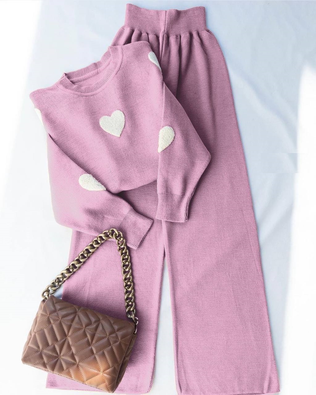 Головна » Магазин » Одяг » Жіночі костюми » Теплый уютный костюм из ангоры (свободные брюки+кофточка принт сердечки) розовый